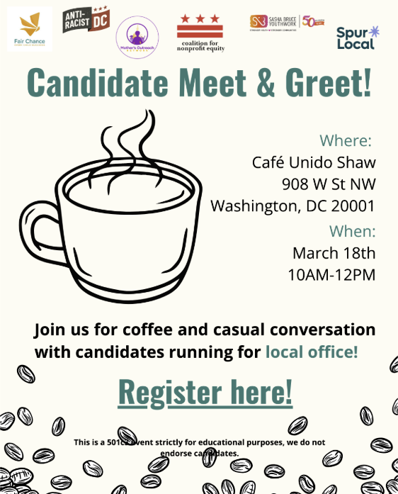 Nonprofit Candidate Meet & Greet Wednesday, March 18, 2026 10:00 AM 12:00 PM Café Unido Shaw 908 W Street Northwest Washington, DC, 20001 United States (map) Google Calendar ICS Nonprofit Candidate Meet & Greet – March 18 ARDC is co-hosting a nonpartisan candidate meet and greet with the Coalition for Nonprofit Equity and other partners so nonprofit staff and leaders can talk directly with candidates about what’s at stake for our sector and the communities we serve.